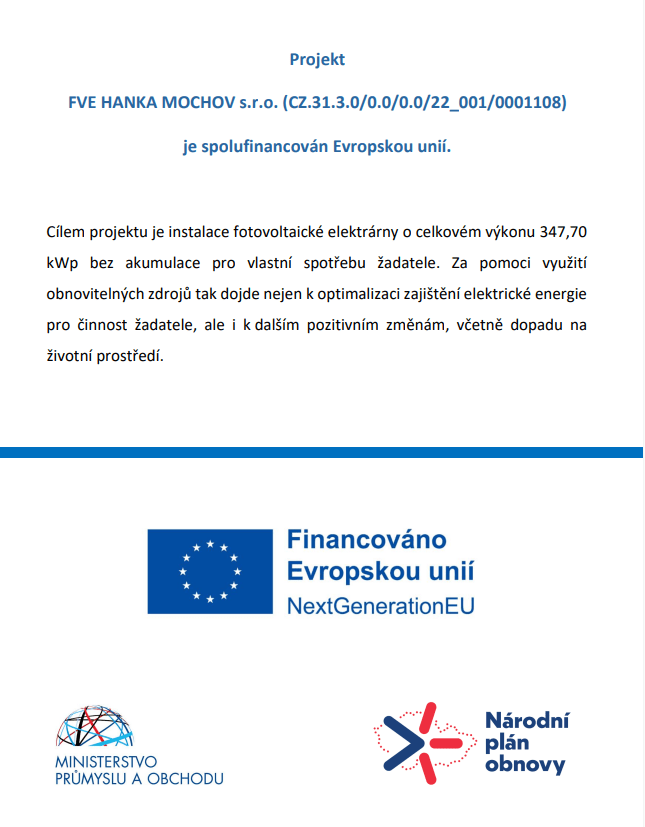 REALIZACE ENERGETICKÝCH ÚSPOR V AREÁLU SPOLEČNOSTI HANKA MOCHOV S.R.O.